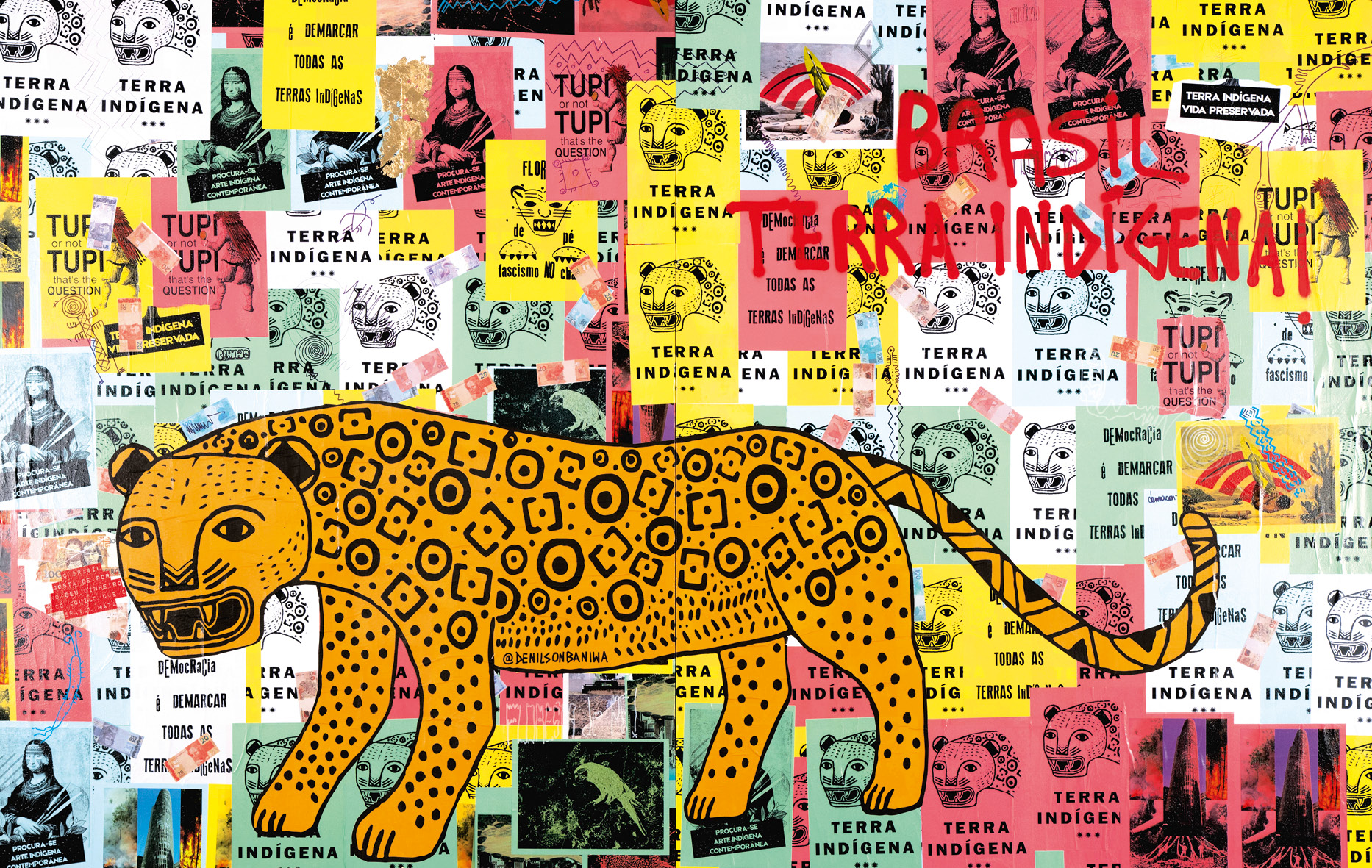 Né à Barcelos, à l’intérieur de l’Amazonas, Brésil, il est un artiste du peuple Baniwa. En tant qu’activiste pour les droits des peuples indigènes, il a organisé des conférences, des ateliers et des cours depuis 2015, agissant fortement dans les régions du sud et du sud-est du Brésil, ainsi qu’à Bahia. En 2018, il a organisé l’exposition « Terra Brasilis : agro is not pop ! », à la galerie d’art de l’Universidade Federal Fluminense, Niterói. La même année, il a participé à la résidence artistique de la 4e édition du Festival Corpus Urbis, à Oiapoque, dans l’État d’Amapá. Il a participé à des expositions au CCBB, à la Pinacothèque de São Paulo, au CCSP, au Centro de Artes Helio Oiticica, au Museu Afro Brasil, au MASP, au MAR et à la Biennale de Sidney. En plus d’être un artiste visuel, Denilson est également un publicitaire, un articulateur de la culture numérique et du hacking, contribuant à la construction d’une imagerie indigène dans divers médias tels que les magazines, les films et les séries télévisées. En 2019, il a remporté le Pipa Award dans la catégorie en ligne et en 2021, il a été l’un des lauréats nommés par le jury.