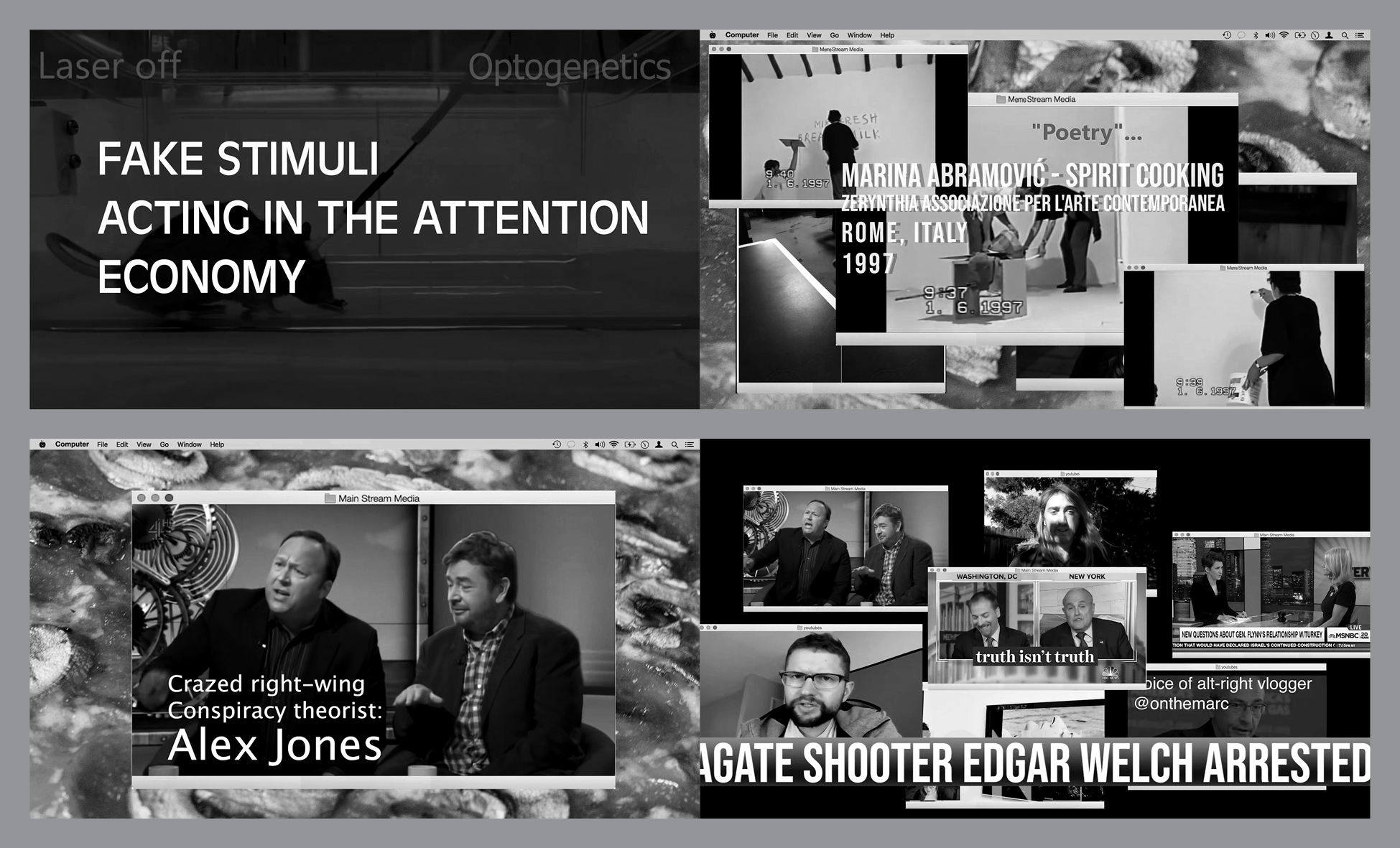 Artiste post-conceptuel, auteur et théoricien américain, il vit et travaille à Berlin et Los Angeles. Il est actuellement professeur d’art à la Weißensee Kunsthochschule de Berlin et directeur fondateur du Saas Fee Summer Institute of Art. Combinant la photographie, la vidéo, la peinture, le net art, les installations bruitistes, etc., le travail de Warren Neidich questionne les activités immatérielles inhérentes à l’économie du savoir à l’ère contemporaine. Derniers ouvrages parus : The Glossary of Cognitiv Activism (For a Not So Distant Future), Archive Books, Berlin, 2019 ; Neuromacht, Merve Verlag, Berlin, 2017; The Color of Politics, catalogue de l’exposition éponyme au Verein zur Förderung von Kunst und Kultur de Berlin du 28 avril au 19 août 2017.