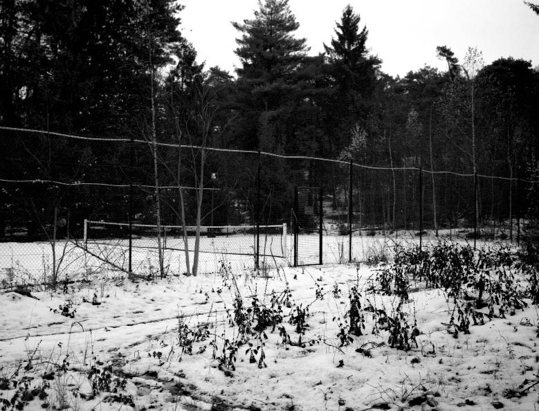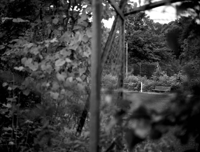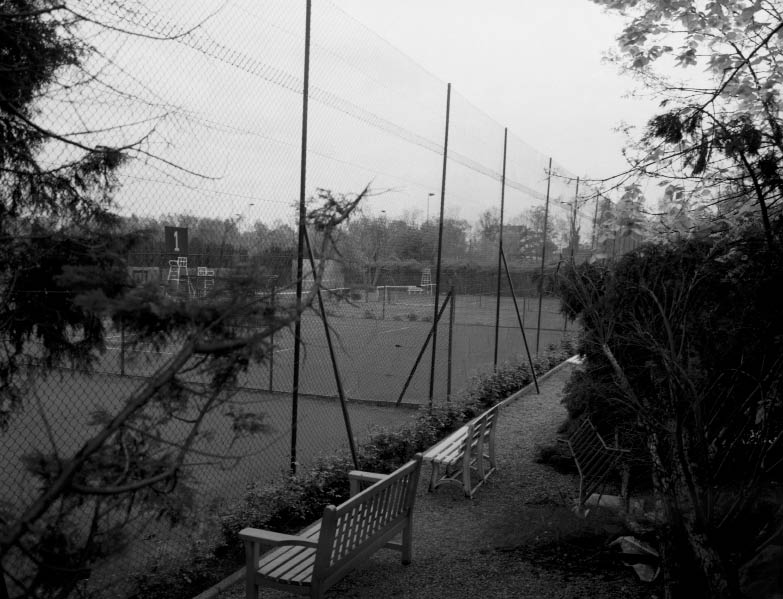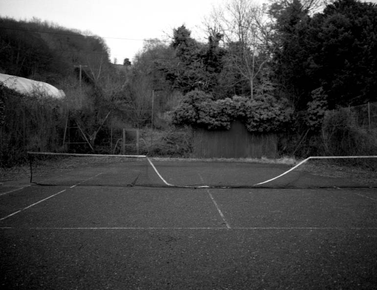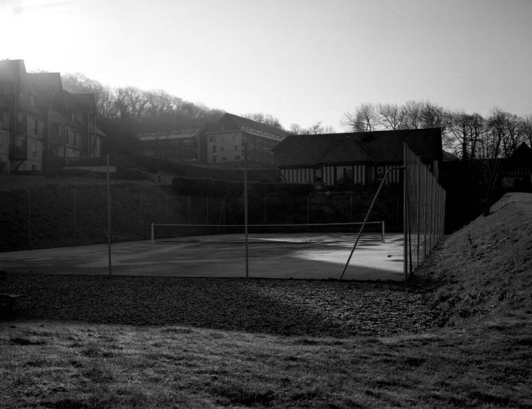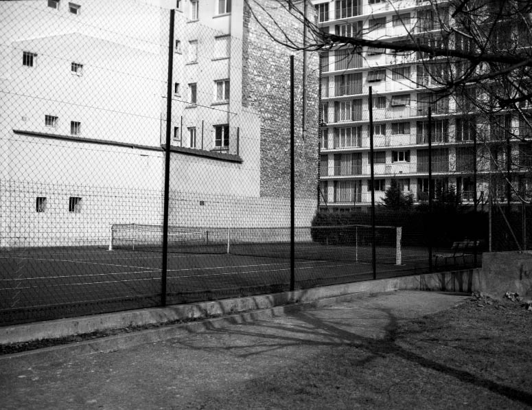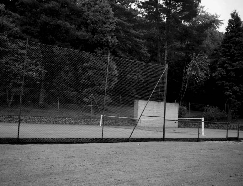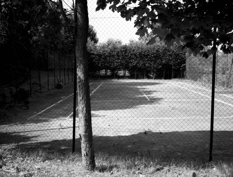C’est bien sous le prisme du caractère pseudo-universel de l’activité sportive que le photographe nous donne à voir un trou dans notre environnement. Zone urbaine aisée ou populaire, semi-urbanisée, zone de villégiature, espace à l’abandon, campagne accueillent tous chacun à sa manière cette surface de 23,77 mètres par 8,23 mètres, entourée d’un grillage pour arrêter les balles.